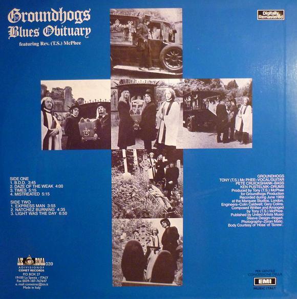 Первая ласточка нестандартного музыкального мышления появилась с выходом второго альбома "Сурков" - Blues Obituary 1969! Из названия видно, что это все еще блюз, но с чуваками уже произошел какой-то явный сдвиг в нужную сторону. Во-первых, от них отвалил четвертый (явно мешающий) участник группы, и "Граундхогс" остались в своем привычном составе - трио! Именно это-то и послужило той причиной, тем толчком, который заставил Тони МакФи постепенно взять бразды правления в свои руки и выползти на первый план. Именно это и раскрепостило старину Тони, заставило его как-то поплотнее насытить песни, все построенные в блюзовом ключе, заставило его играть на гитаре побольше, почаще, поинтереснее, поизящнее... В итоге что получились вроде бы и блюзы (ну, с кучей оговорок разумеется), но с каким-то совершенно иным, новым видением стиля. Вернее даже не столько новым видением стиля, сколько с новым видением гитары в этом самом стиле! Вот, к примеру, песня "Times" - очень там так имнимально, но здорово подчеркивается вокальная мелодика гитарным унисоном, и на этом фоне вытягиваются последние нервы слушателя именно чумовейшей из слайд-гитар. И тупо ритм-секция бомбит по долям! И вот подобной фразировки я как-то и не слышал в записях того времени... Мало того - какие-то ассоциации возникают только с исключительно свежими группами - в данном случае сразу на ум приходит "White Stripe"s - именно у Джека Вайта я слышал подобный блюз-вижн... Да и вообще - половину современного неорокешника (как вот в частности Black Rebel Motorcycle Club) я услышал именно в Граундхогсе начала 70-х годов!
