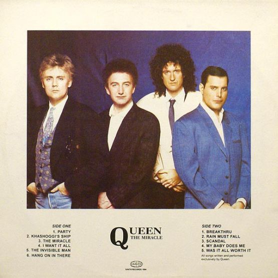 Альбом "The Miracle" был разгромлен критиками в свое время, но фаны оценили его по достоинству. Хотя он был слабее предыдущего альбома A Kind Of Magic, на нем есть несколько хороших песен. Первые две песни ничем особым не выделяются, а дальше идут одни хиты: The miracle, I Want It All, The invisible Man, Breakthru, Scandal - ко всем ним были сняты видеоклипы. Самый красивый видеоклип на песню Breakthru, в котором группа мчится на паровозе. Для тех времен этот клип был просто офигенным. В общем, альбом производит хорошее впечатление, хотя и не является лучшим в дискографии группы.